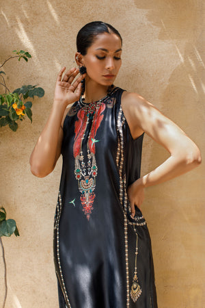Cut from silk, this elegant black printed shirt is a elegant piece for the festive season.