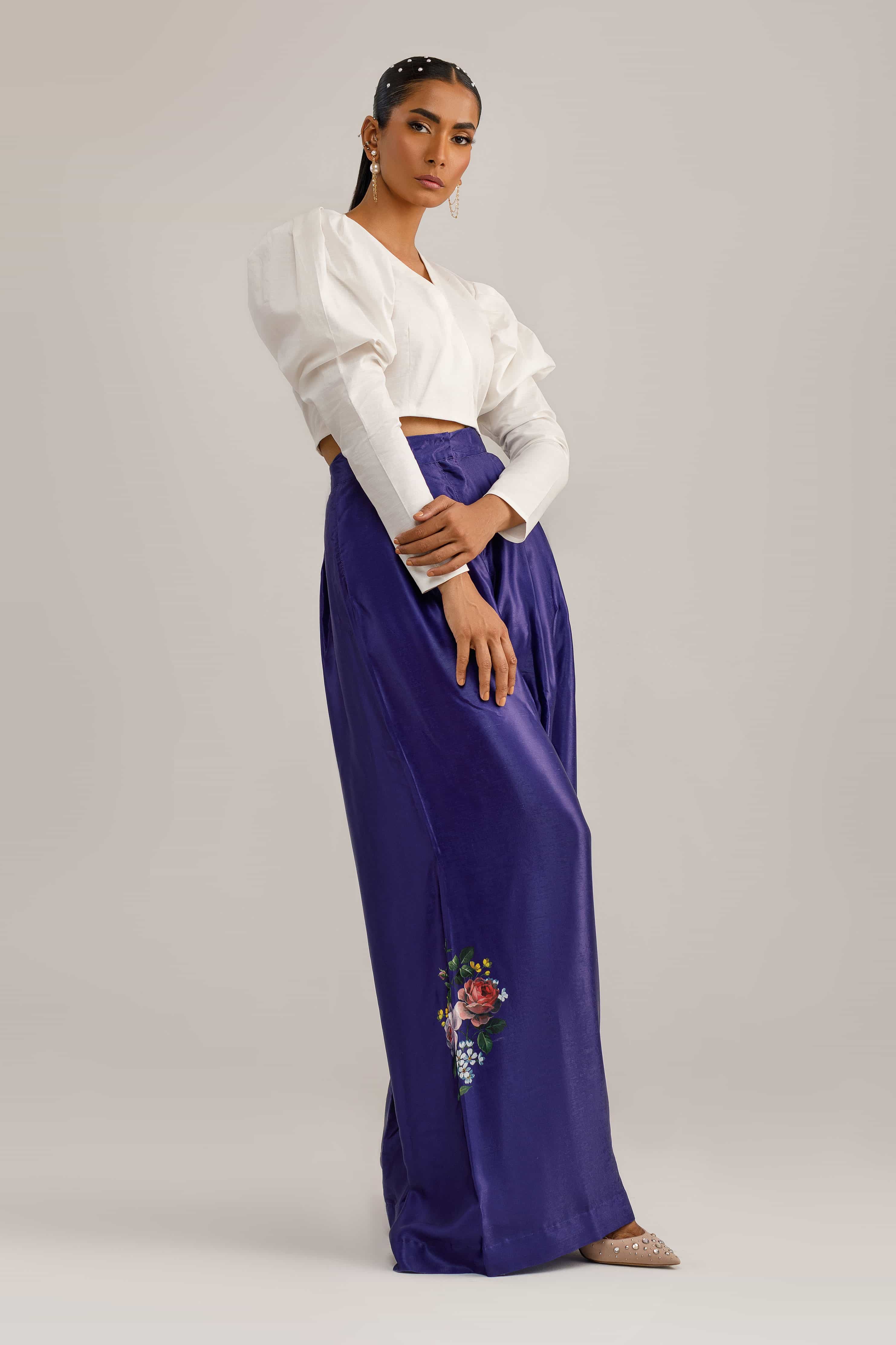 The crop top design adds a playful and youthful touch to your outfit, while the puffy shoulders create a feminine and fashionable look. The white color adds a clean and fresh vibe, making it easy to pair with a variety of bottoms.