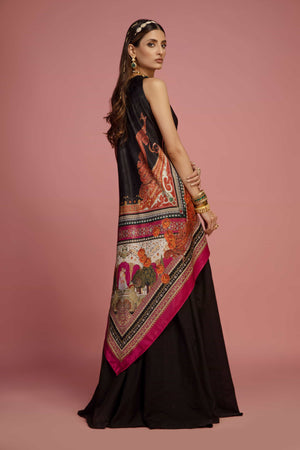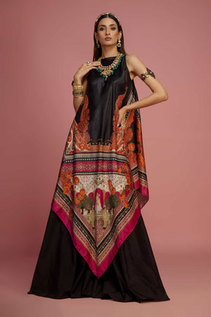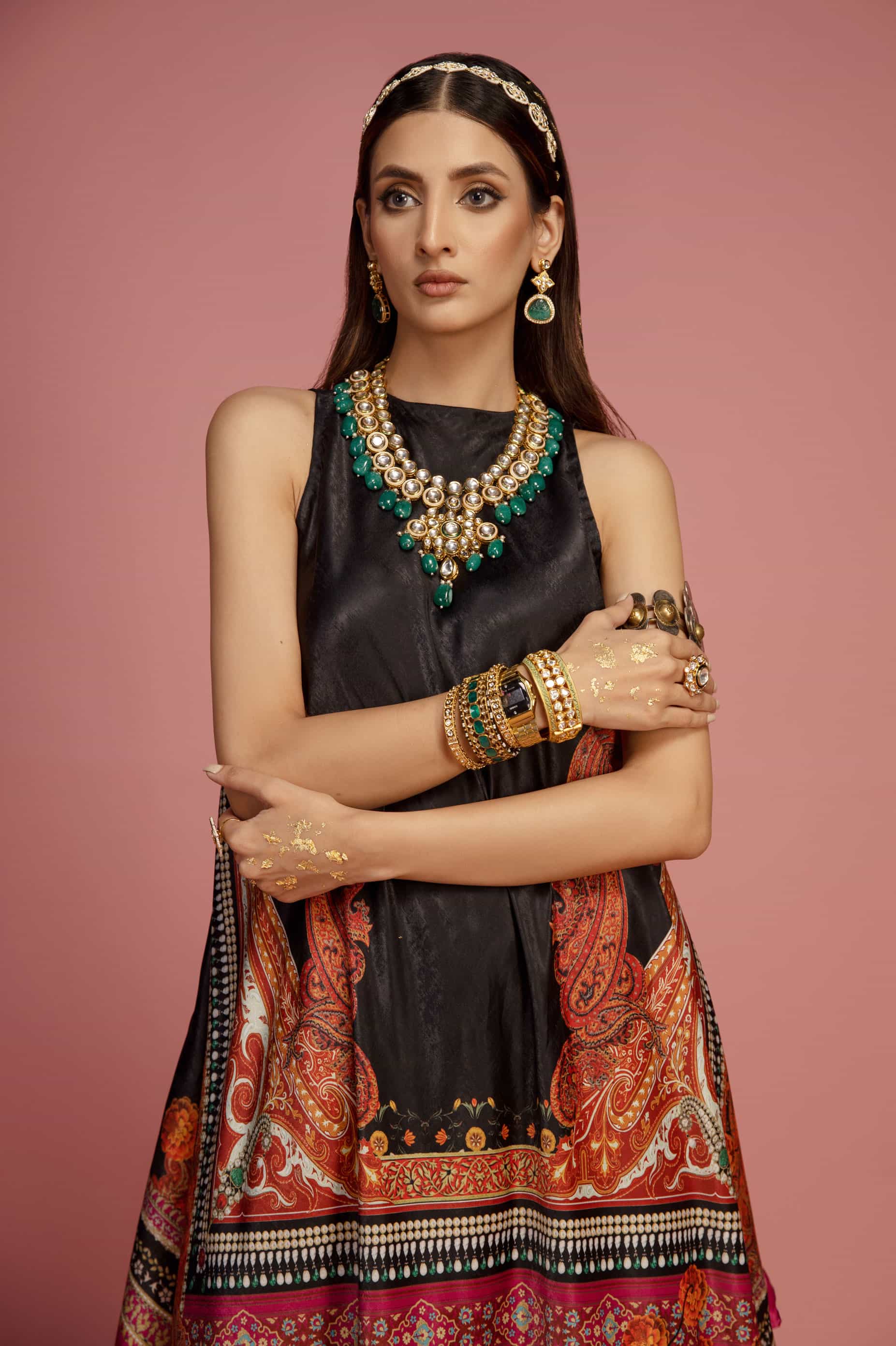 Silk halter neck cut is both chic and sophisticated, while the dhaka pajama is a comfortable and stylish. Together, it create a glorious and feminine outfit.