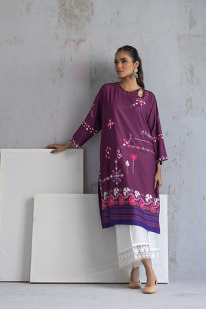 A midnight purple color kurta a rich and regal look a subtle colors print, the kurta will have a beautiful and sophisticated design. incorporating resham shisha work will add intricate details and make it even more exquisite.