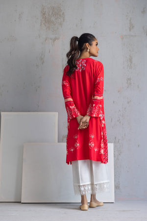 The combination of the vibrant red orange base with the light print will create a striking contrast that is sure to catch everyone's attention. And with the addition of resham embroidery and shisha work.